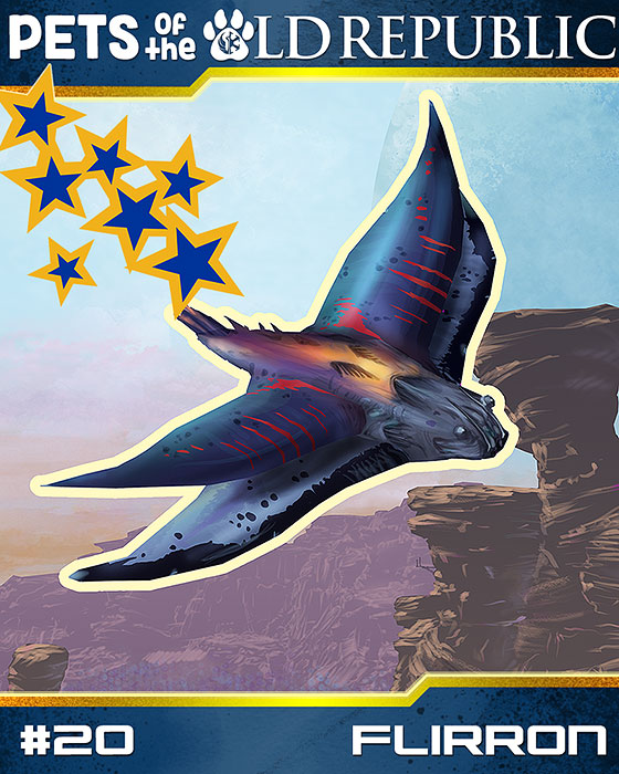 Players whose characters are high enough level to survive the dangerous jungles of Onderon may acquire the Flirron as a pet. The Flirron won’t cost you a single cartel coin or credit, nor does it have any reputation requirement. The Flirron pet is automatically awarded via an achievement which has you locate morsels of food to feed the tiny Flirron fry found in the zone. Like many a lost kitten, feed it enough and it will follow you home and assume you’re its momma.